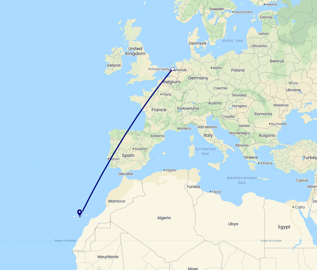 The flight departed Schiphol at 7:20 AM, and after flying for 4 hours and 45 minutes (yes that is also longer than I expected..) we arrived in sunny Las Palmas, Gran Canaria.